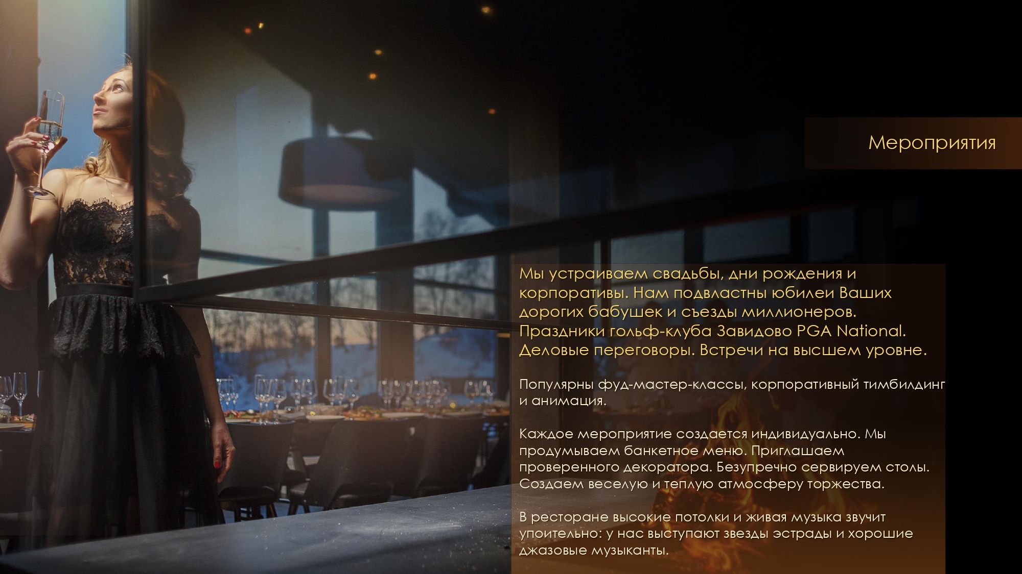 Вечеринки, свадьбы, дни рождения и деловые встречи.